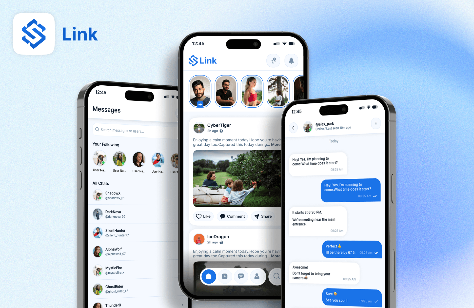A modern social media app with posts, real-time interactions, content feeds, and Google Maps integration for location-based discovery.